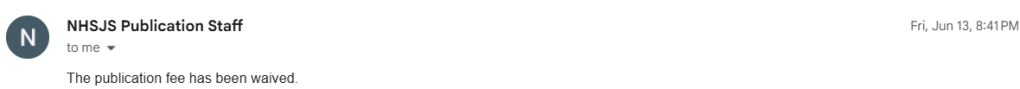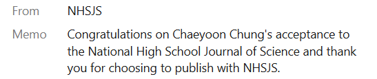 Publishing this research paper was a journey in itself. After completing the manuscript, I embarked on a five-month journey of revisions and edits to publish with The National High School Journal of Science (NHSJS), a peer-reviewed journal. I am incredibly grateful to the NHSJS team for their generous mentorship and thoughtful feedback. They challenged me to think more critically, to rewrite until the core ideas were crystal clear, and to stand behind every citation. My publication fee was also waived, which made this opportunity even more accessible. The paper is expected to be published in the July edition. (I will add the link later.)